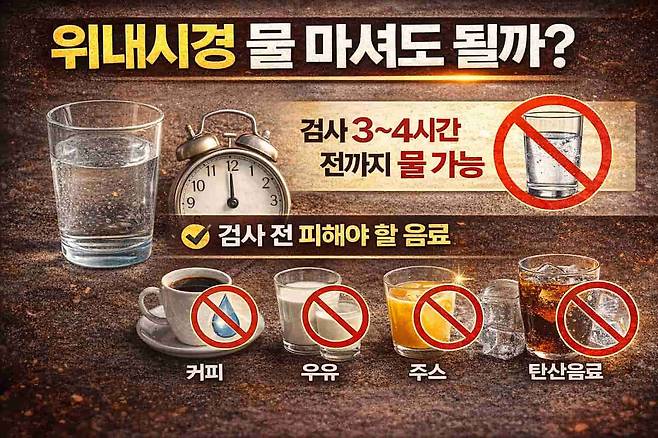 우유, 커피, 주스는 절대 금지! 검사 3시간 전부터는 물도 중단 권장