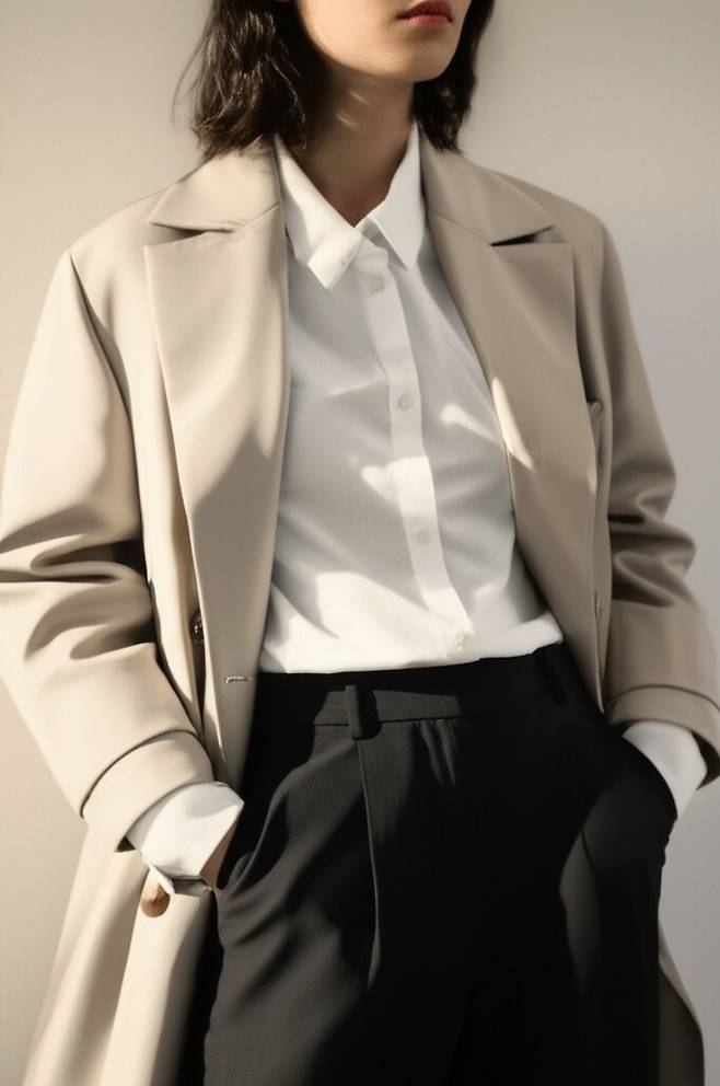 • 오버사이즈 셔츠, 슬랙스, 롱 코트 등 심플한 아이템을 활용하여 편안하면서도 스타일리시한 룩을 완성해보세요.