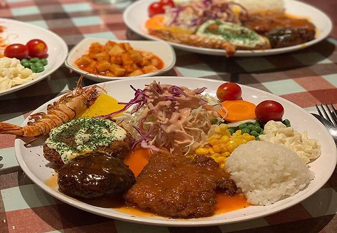 일산 시장 안에 위치한 40년 노포 일산 '밤비노경양식'. 입구부터 정겨운 분위기가 물씬 풍기는 이 집은 이미 일산에서 경양식 맛집으로 소문이 자자하다. 레트로 감성이 가득한 그릇에 담겨 나오는 음식부터 옛 추억이 물씬 느껴진다. 대표 메뉴인 밤비노 정식은 다채로운 색감부터 눈길을 사로잡는다. 돈까스는 물론이고 함박스테이크와 생선까스, 마카로니, 단무지, 샐러드, 콩, 새우와 과일까지 다채로운 색감으로 푸짐하게 채워져있는 정식은 다양하게 먹을 수 있어 더욱 좋다. 달달한 맛의 소스로 남녀노소 먹기 좋아 가족단위로 방문하는 손님들이 많은 편.