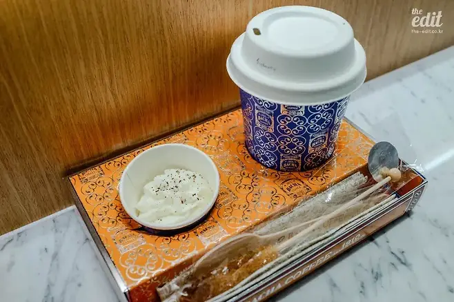 이번에는 가향커피 1910 블렌딩, 싱글오리진 에티오피아 시다모, 파인 싱글오리진 예멘커피를 테이크아웃으로 주문했다. 테이크아웃 패키징이 좋았다. 설탕, 일회용제품, 상티크림까지 상당히 비주얼이 뛰어났다. 에티오피아 싱글오리진 테이크아웃도 1만 1,000원으로 동일하고, 파인 싱글오리진 그랜드 모카 마타리 커피는 1만 8,000원. 이외에도 비싼 커피들이 많지만 가장 합리적인 커피들을 선택했다. 상티크림은 생크림과 비슷한 느낌인데, 취향에 따라서 첨가해서 마시면 된다.