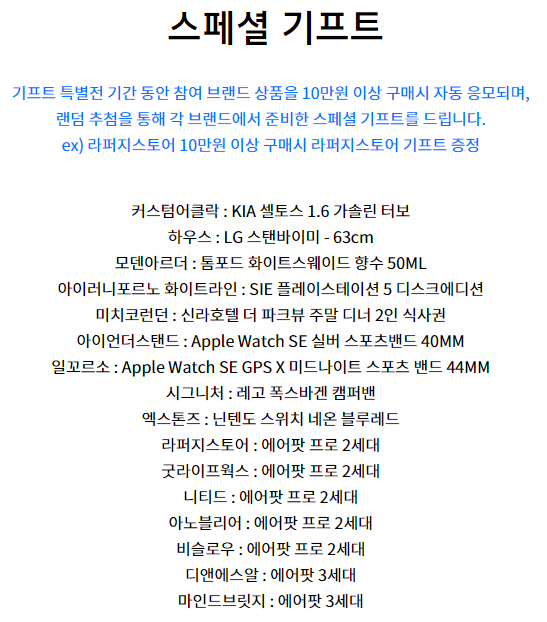 10만원 구매 시, 에어팟 프로 2세대 선물 응모까지 가능한
