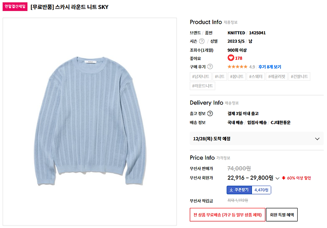 스카시 라운드 니트는 26,820원으로 라퍼지스토어 파카와 함께