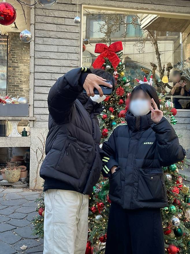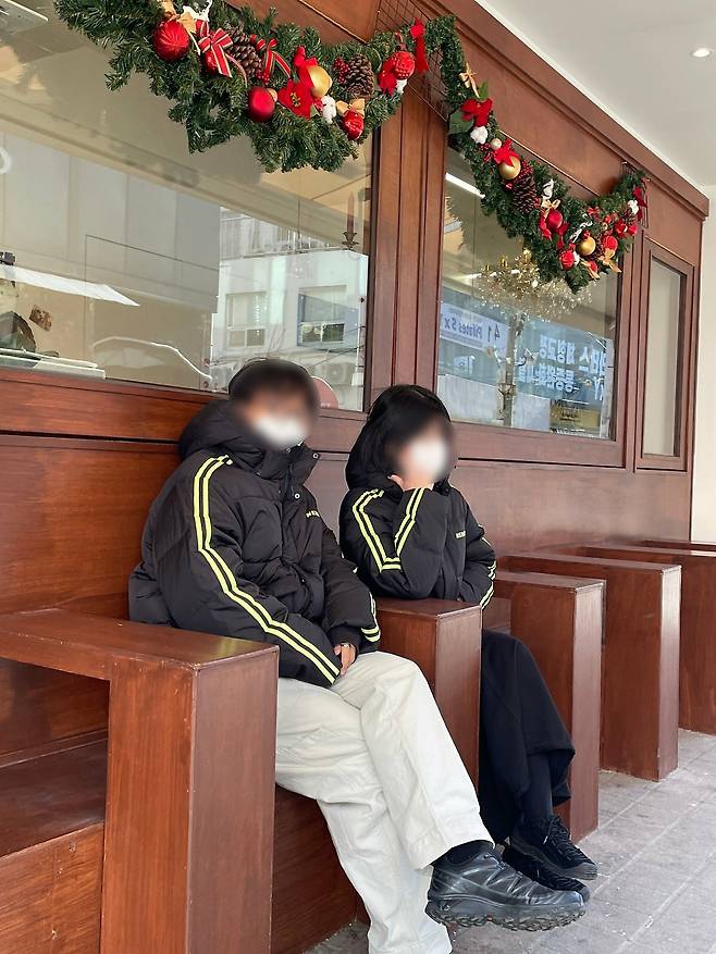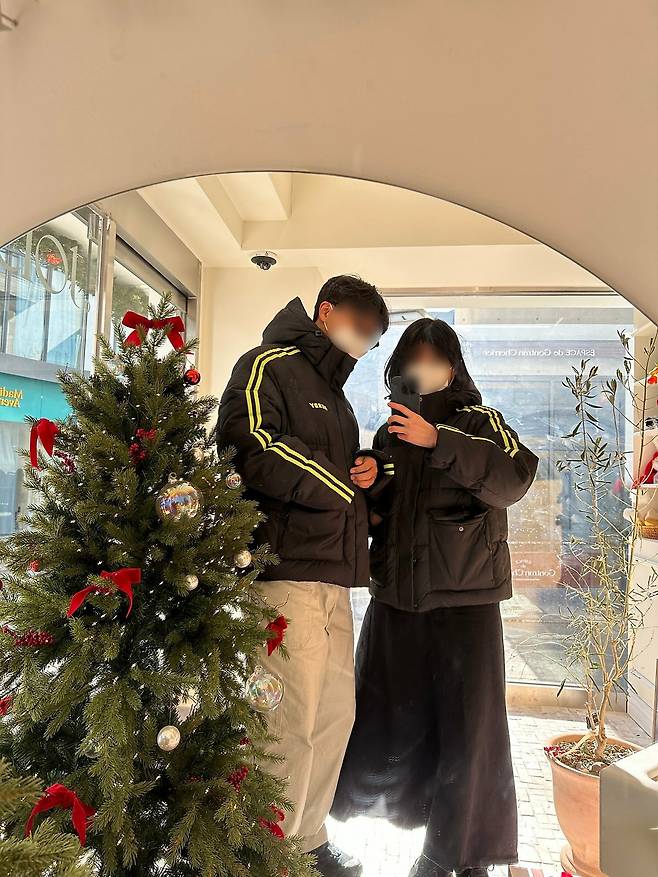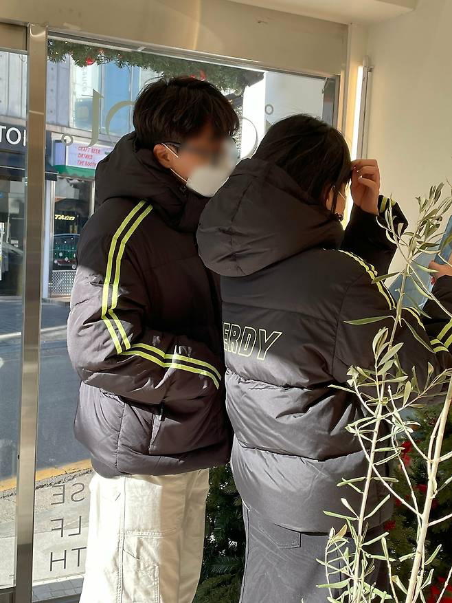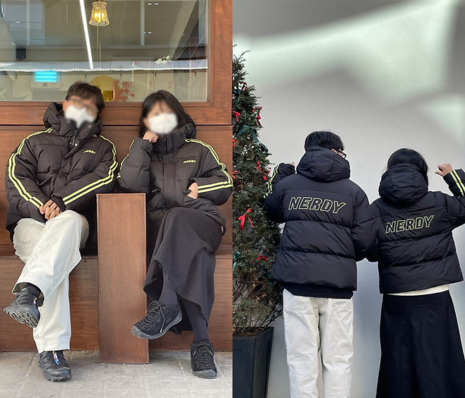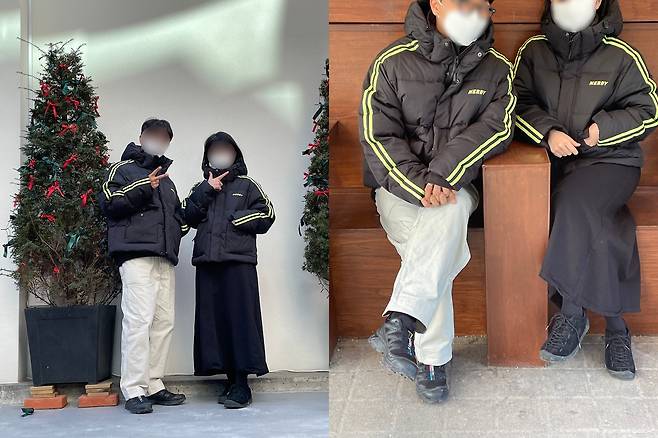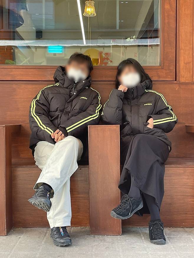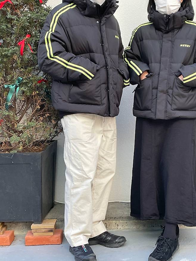 저희는 커플룩으로 숏패딩을 매치해 봤는데요~