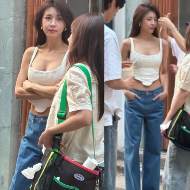 46세 맞아? 무보정 실물 직찍..너무 예뻐서 감탄나오는 여배우, 크롭탑 패션