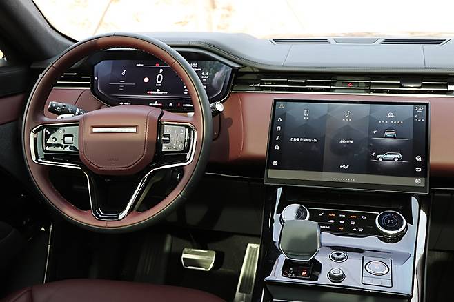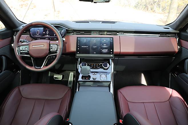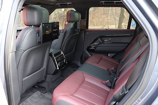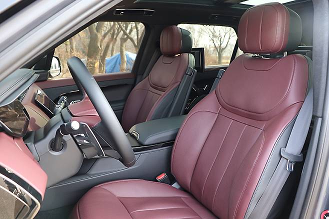 시트는 5인승. 레인지로버보다는 약간 낮지만 히프 포지션이 높다는 것이 도드라진다. 22웨이 조절방식으로 RR 모델답게 가죽 시트를 채용하고 있다. 시트백과 쿠션이 두껍고 그만큼 착좌감은 안락하면서 지지성이 좋다. 네 개의 메인 시트 헤드레스트에 각각 스피커가 장착되어 있다.