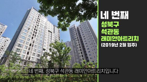 네 번째. 서울 성북구 석관동 래미안아트리치다. 2019년 2월 입주로 총 1091가구다. 7월 기준 매매가는 8억9500만원, 전세가는 5억3000만원이다. 매매가와 전세가의 차이는 3억6500만원이다.