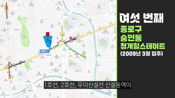 청계힐스테이트는 1호선, 2호선, 우이신설선 신설동역이 도보 5분 걸린. 가구수는 적은 편이지만 트리플역세권이라는 장점이 있다.