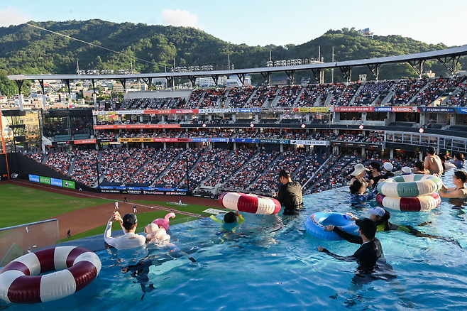 7월의 대전, 수영장에서 야구를 본다는 말도 안 되는 경험이 이제 현실이 됐다.