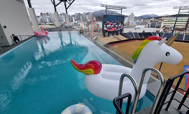 수영장이 설치된 야구장은 MLB 애리조나의 체이스필드나 일본 니혼햄의 에스콘필드 등 몇 곳에 불과하다.