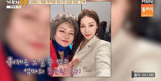 "어머니 별세 후 미나가 정말 많이 힘들었을 것 같다"는 얘기에 미나는 엄마와의 마지막을 떠올리며 눈시울이 붉혔다.