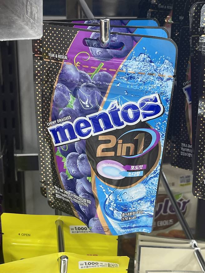 1. 멘토스 2in1 포도맛 소다향