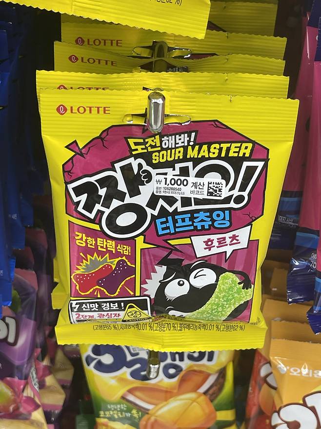 짱셔요! 터프츄잉 후르츠는 이름처럼 강한 상큼함이 특징인 후르츠맛 츄잉 캔디예요