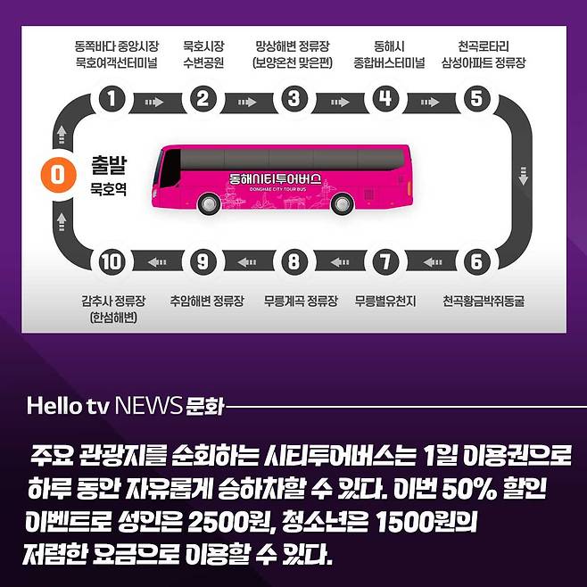동해시가 11월 여행가는 가을을 맞아 동해시티투어버스와 망상오토캠핑리조트 카라반 등에 대한 할인 행사를 진행합니다.