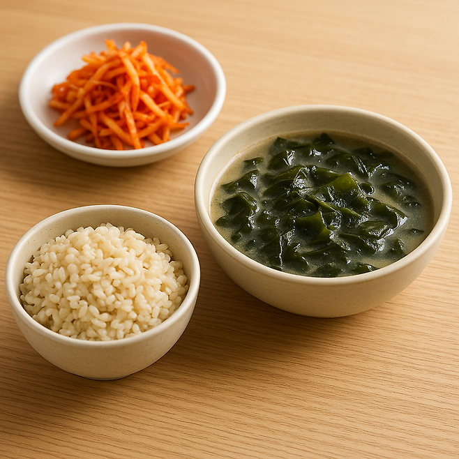 1. 들깨미역국 + 현미밥 + 생채무침