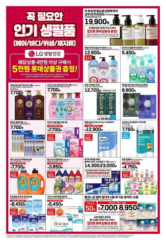 LG생활건강 샴푸/린스/치약: 1+1 또는 최대 50% 할인