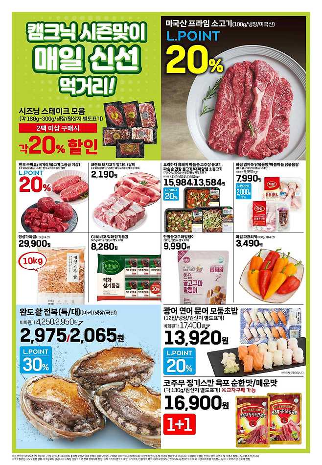 ✅ 테마: 캠핑 시즌 맞이, 여름 준비 특가, 생필품 세일
