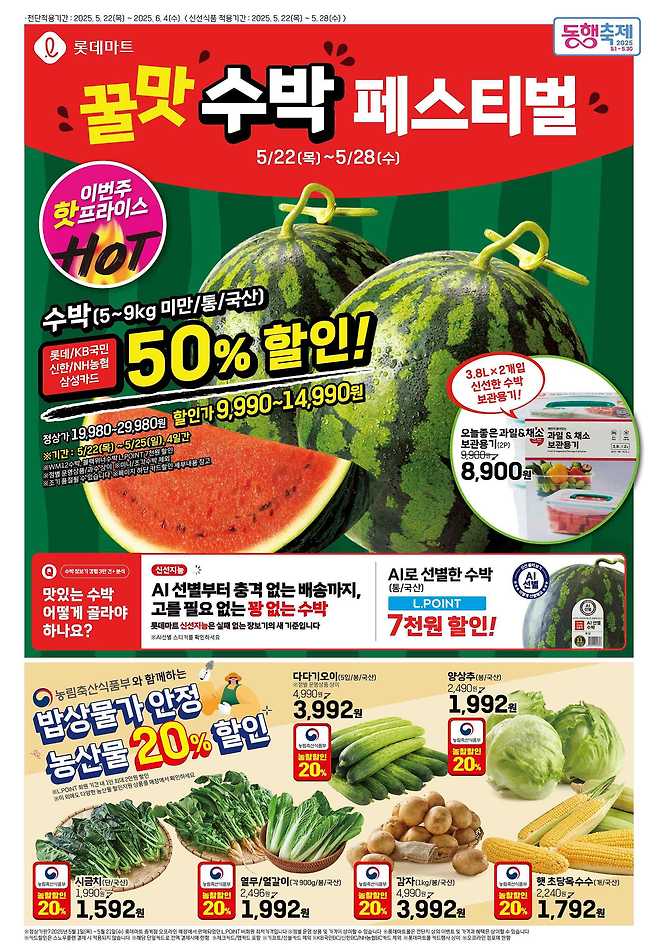 수박 (5~9kg): 50% 할인 → 9,990~14,990원