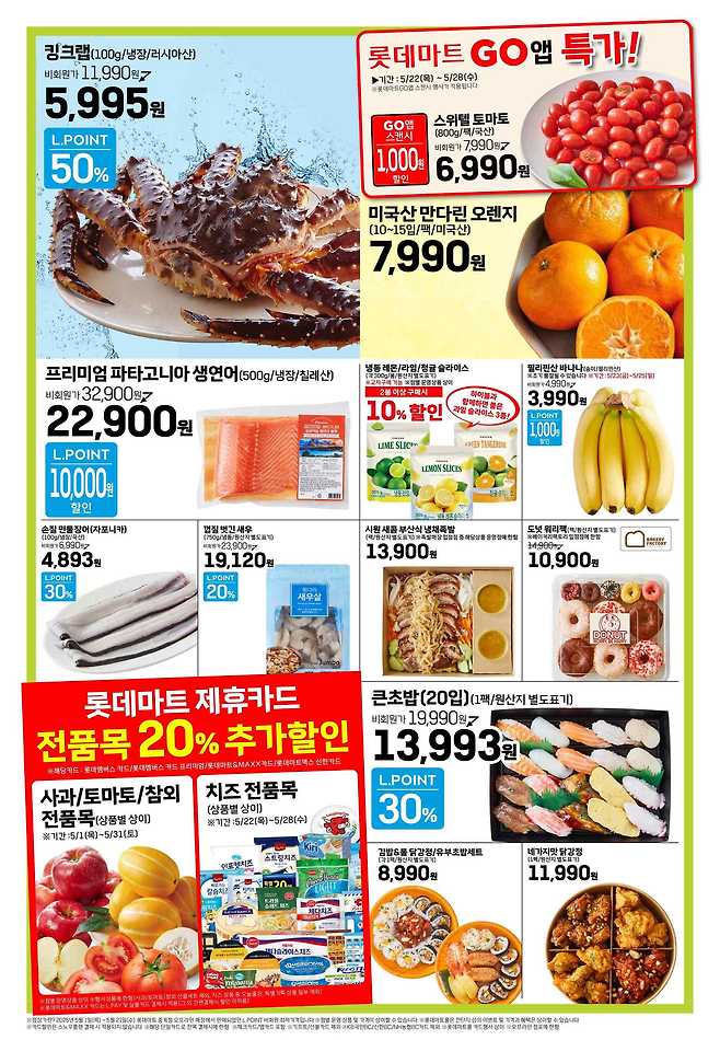 킹크랩, 광어, 연어: 최대 50% 할인 + L.POINT 추가 적용