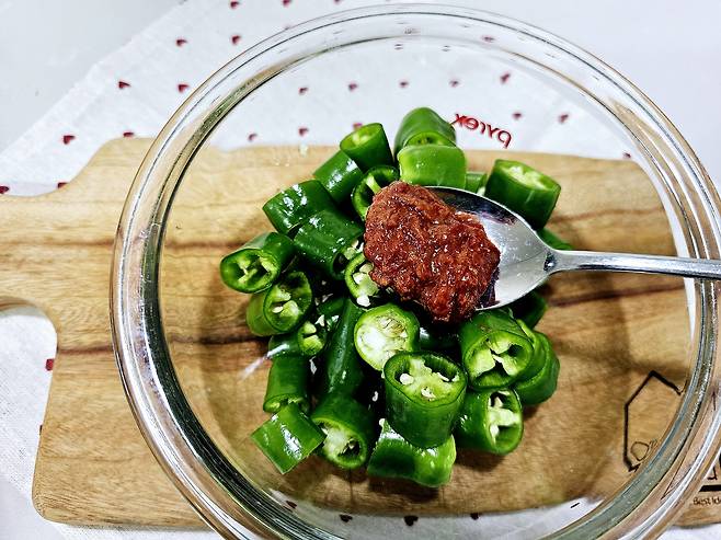 ํ๋ฅด๋ ๋ฌผ์ ๊นจ๋ํ๊ฒ ์ป๊ณ ํค์นํ์๋ก ๋ฌผ๊ธฐ๋ฅผ ์ ๊ฑฐํ ๋ค, ์ด์ท์ฐ๊ธฐ๋ก 1~2cm ํฌ๊ธฐ๋ก ์ฐ์ด์ฃผ์ธ์.