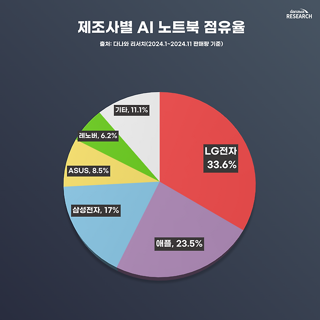 전체 판매량에서는 LG전자가 1위를 차지했다. 이는 그램 시리즈가 여전히 소비자들에게 높은 선호도를 받고 있다는 점을 반영한다. 특히 LG전자는 AI 노트북뿐 아니라 일반 노트북 시장에서도 높은 점유율을 유지하고 있다.