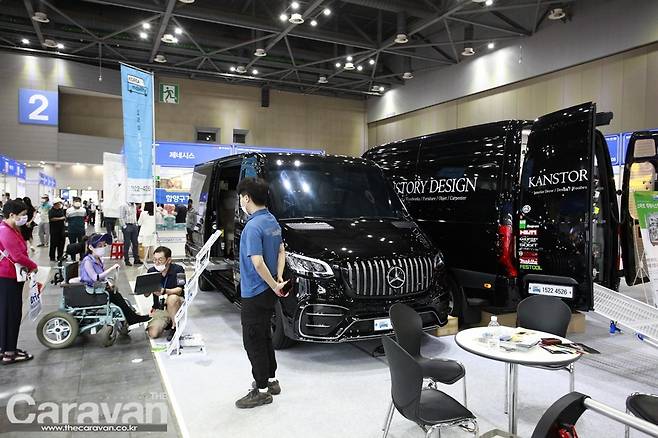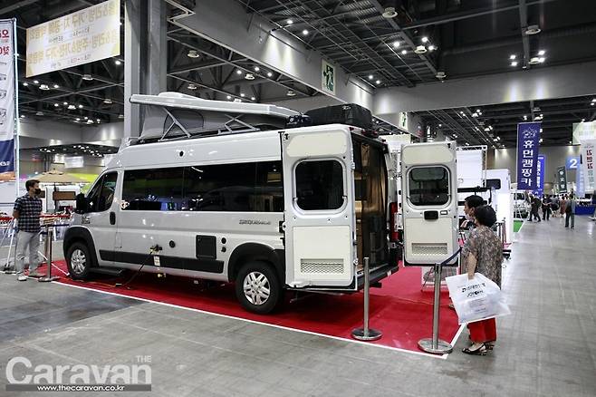 모터홈코리아에서 새롭게 런칭한 벤츠 스프린터 기반의 LE VOYAGEUR Class A 모터홈. 럭셔리한 디자인과 8미터에 육박하는 여유로운 생활공간으로 전시장을 찾는 관람객들의 발길이 끊이지 않았다.