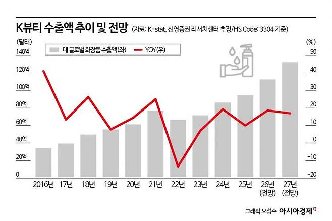 K-뷰티가 글로벌 시장에서 빠르게 영향력을 확대하고 있다. 수출 확대와 소비 트렌드 변화에 힘입어 내년에는 글로벌 점유율 5%, 수출액 160억달러(약 24조원)를 넘어설 것으로 전망된다.