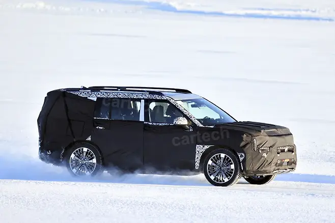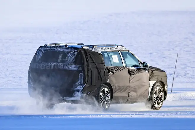 북극권에서 포착된 2027년형 현대 산타페 페이스리프트 프로토타입은 기존 모델의 박스형 디자인을 유지하면서 전후면 디자인을 대폭 변경한 모습이다. 내부에는 플레오스 커넥트 중앙 화면과 테슬라 스타일 스티어링 휠 컨트롤이 적용되어 사용자 인터페이스를 현대적으로 업그레이드했다. 차체에 부착된 "MX5a EREV" 스티커는 이 모델이 5세대 산타페의 북미 시장향 확장형 전기차(EREV) 버전임을 확인시켜주며, 현대의 첫 레인지 익스텐더 SUV로 주목받고 있다.