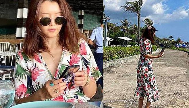 발리 같은 휴양지에선 꽃무늬 패션이란 말이 있듯 흰색 배경에 화려한 패턴이 그려진 원피스를 입은 채정안은 바다와 야자수가 보이는 해변가를 걷는 모습을 공개했는데요.