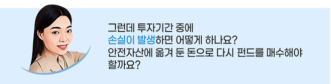 투자기간 중 손실이 발생했다고 해서 예금으로 전환했던 수익을 찾아서 다시 펀드를 매수하지는 않습니다. 그래서, 프라핏 키핑 플랜에 따라 투자하면