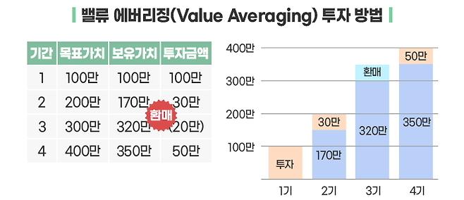 이럴 때는 밸류 에버리징(Value Averaging)이라는 투자 방법을 이용하면 좋을 것 같습니다.