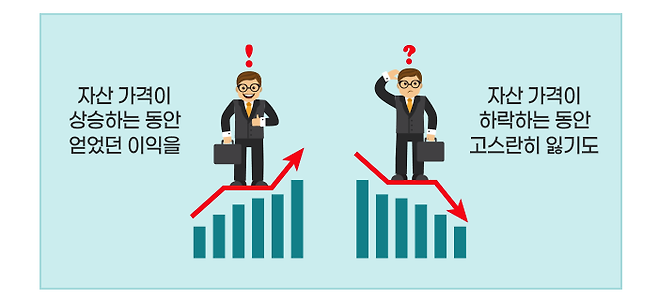 그래서 자산 가격이 상승하는 동안에 얻은 이익을 자산 가격이 하락할 때 고스란히 잃어버리게 됩니다.