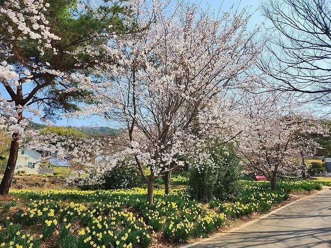 수선화와 벚꽃이 동시에 반기는
