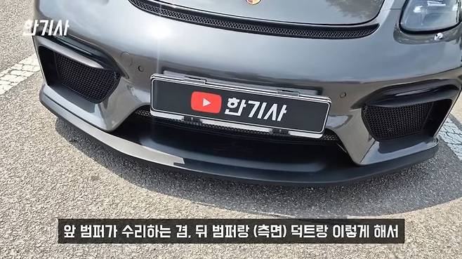 지금 외관이나 범퍼 같은 게 일반 포르쉐 718 박스 S모델이 아닌 거 같을 거예요. 슬픈 기억인데 겨울에 도로를 가다가 고라니를 치는 바람에 앞 범퍼를 수리하는 겸 뒷 범퍼랑 덕트랑 해서 GT4 느낌으로 튜닝을 해놓은 상태입니다.