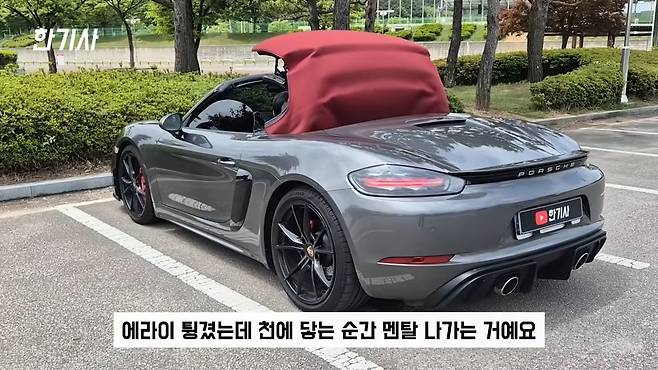 포르쉐 718 박스터 S의 장점은 우선 첫 번째로 '뚜따'라고 하죠. 컨버터블이라는 게 뚜껑이 열리지 않는 차랑은 굉장히 다르거든요. 그래서 뚜따를 하고 출근할 때 좋아하는 음악 틀어놓고 출근하면 진짜 너무 행복해요. 출근해서는 다시 25톤 액시언트를 타고요. 포르쉐 718 박스터가 약 1억대 초반으로 뚜껑이 열리는, 오픈 에어링을 즐길 수 있는 최고의 스포츠카라는 평가가 굉장히 많더라고요.
