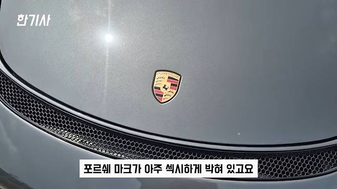 박스터 전면부를 보시게 됐을 때 우리를 맞이해 주는 포르쉐 마크가 아주 섹시하게 박혀있고요. 거기에 GT4 하단부 범퍼로 튜닝을 해놨기 때문에 포르쉐 718 박스터 전면부의 디자인을 완성되는 것 같아요.