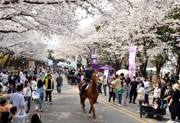 벚꽃 축제 기간 차량을 통제하여 온전히 벚꽃을 즐길 수 있으며 야간에는 별빛 포토존과 조명이 더해진 벚꽃길이 한 층 더 화려함을 뽐낼 수 있는 축제입니다.