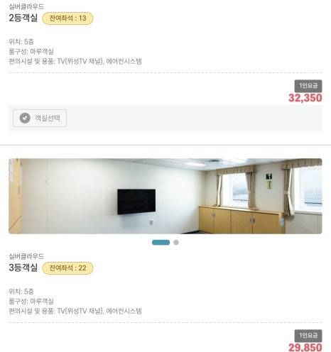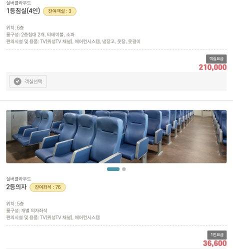 보통 2등 의자와 2등 객실을