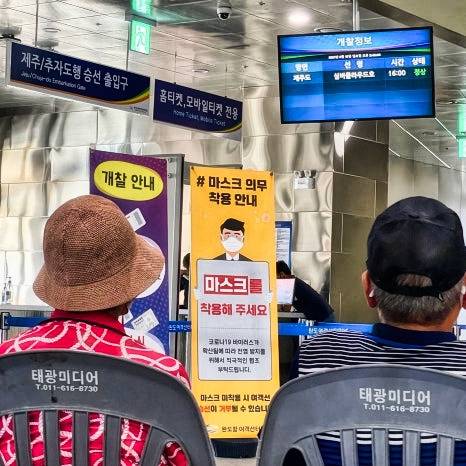 출발 부두를 카톡이나 문자를 보고