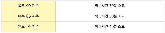 완도에서 제주 가는 시간은 하루에 2번인데,