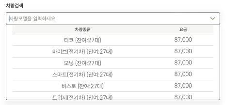 차량 선적 요금은 차종별로