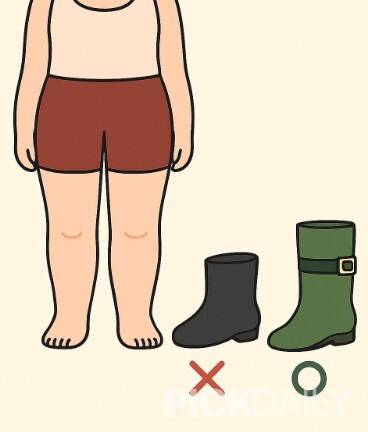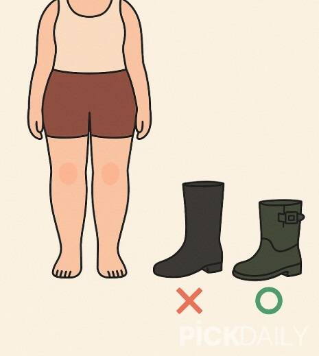 하체 볼륨이 있는 체형은 롱부츠보다 미들~숏 기장의 레인부츠가 더 적합하다. 롱부츠는 다리 전체를 감싸면서 오히려 부피감을 강조할 수 있기 때문이다. 무광 다크컬러는 시선을 눌러주는 효과가 있고, 밴딩 디자인이나 앞코가 살짝 뾰족한 스타일은 자연스럽게 다리 라인을 보완해준다.