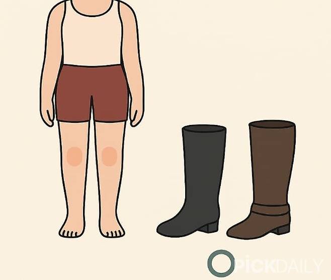 슬림하지만 다리가 짧아 보이는 체형이라면 무릎 바로 아래까지 오는 롱부츠가 시선을 위로 끌어올리는 데 효과적이다. 앞코가 살짝 각진 형태는 다리 연장 효과를 주며, 3cm 정도의 낮은 굽이 비율을 자연스럽게 보완해준다. 입구는 너무 조이지 않는 넉넉한 둘레로 선택하는 것이 좋다.
