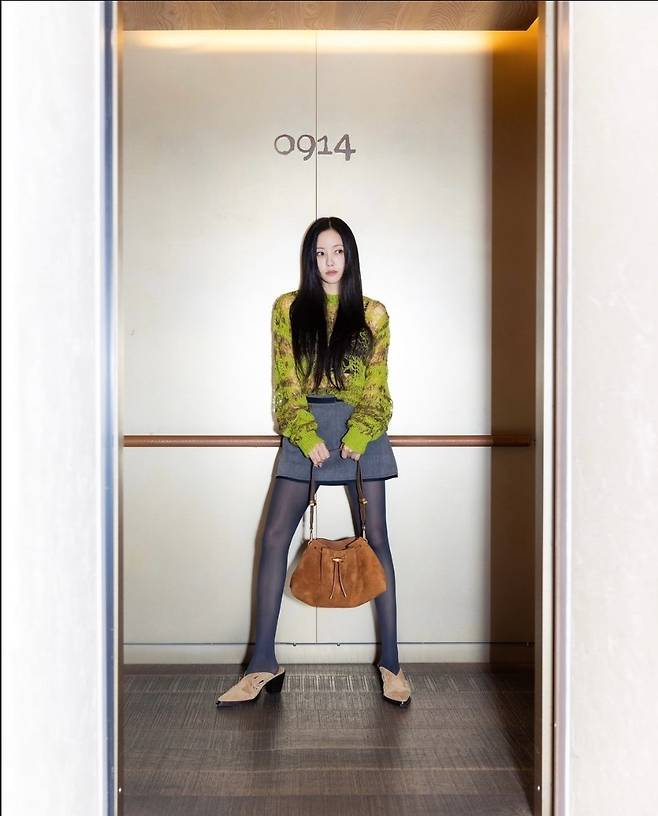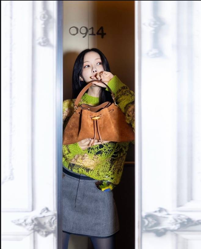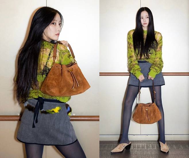 특히 효민은 브라운 스웨이드 핸드백을 활용해 세련되고 우아한 느낌을 잘 살렸습니다.