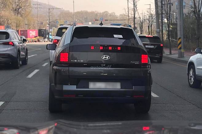 국내 도로에서 테스트 중 포착된 신형 넥쏘는 친환경차 시장을 선도하는 모델다운 미래지향적인 디자인이 특징이다. 특히 현대차그룹 수소 브랜드 ‘HTWO’ 엠블럼을 형상화한 독특한 램프가 특징이다.