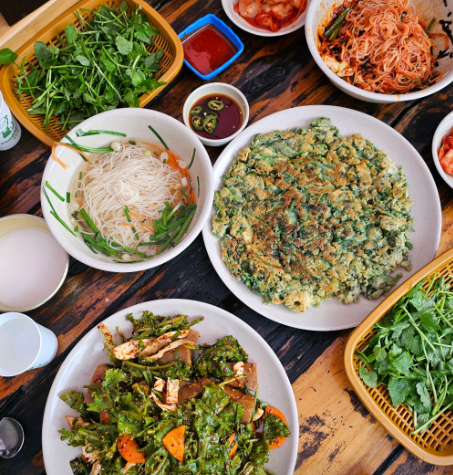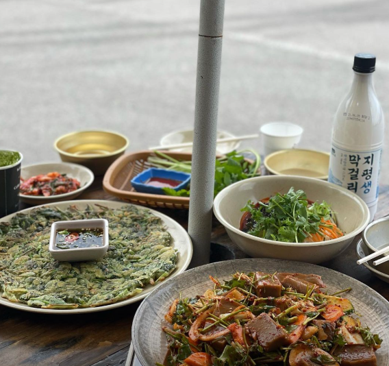 바삭하게 부쳐낸 전 위에 향긋한 미나리 향이 제대로 살아 있어 한입 먹는 순간 봄이 느껴지는 메뉴입니다. 기름지지 않고 담백해서 계속 손이 가는 스타일입니다.