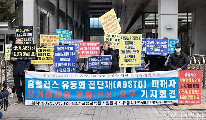 한편 12일 오전 서울 영등포구 여의도 금융감독원(금감원) 앞에는 A씨나 B씨 같은 홈플러스 전단채 피해자들 약 30명이 모였습니다. 홈플러스 전단채 피해자 첫 집단행동입니다. 대부분 노후 자금을 넣은 은퇴한 장년층이었습니다. 고령의 피해자를 대신해 일부 자녀들이 대신 참석하기도 했습니다.
