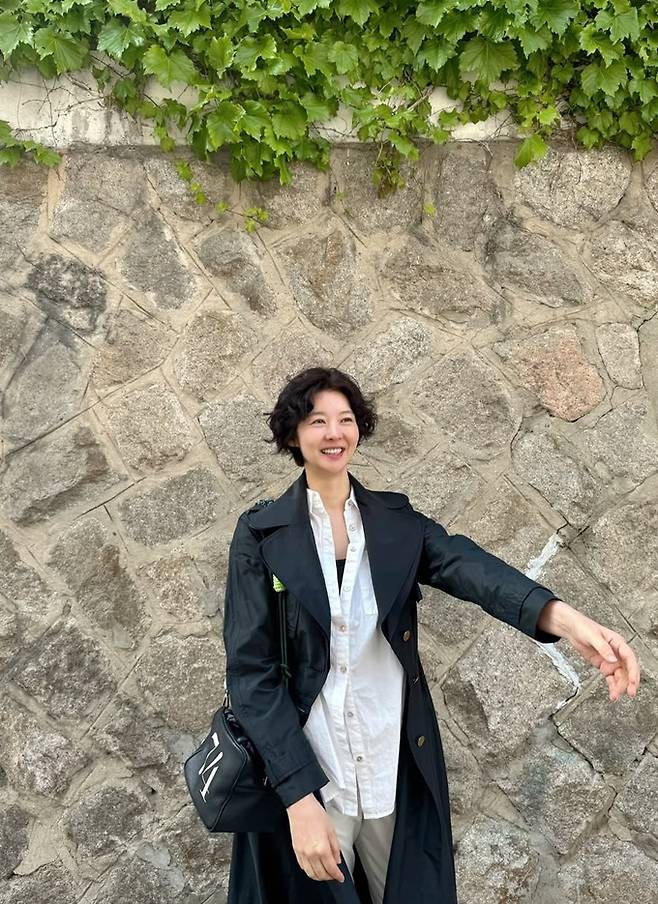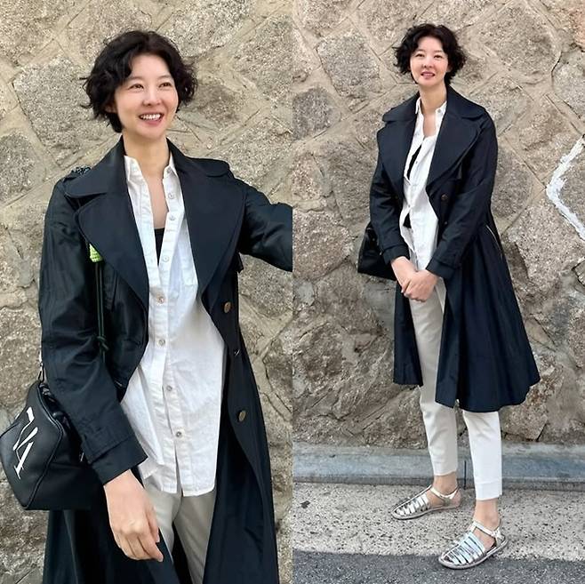 배우 송선미가 셔츠&코트 데이트룩으로 스타일리시한 봄 패션을 선보였다.
