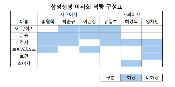 삼성생명 관계자는 "(사외이사에게 이사회 의장을 맡긴 것은) 경영진과 사외이사 간 견제구도를 유지하도록 해 이사회의 독립성 강화와 객관적 의사결정을 보장하기 위한 것"이라며 "사외이사는 상법에 따라 1개사로 제한했다"고 말했다.