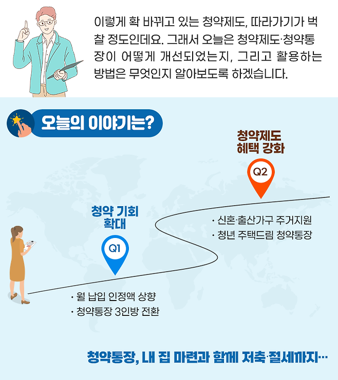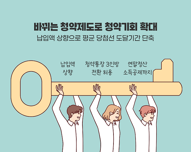 이에 정부는 ‘청약제도 합리화’라는 명목하에 41년 만에 청약통장 월 납입 인정액 한도 상향, 청약부금·청약예금·청약저축의 주택청약종합저축 전환 허용 등 다양한 정책들을 쏟아내고 있습니다.
