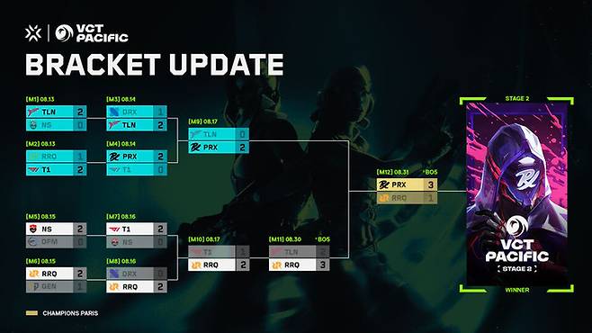 한국팀 DRX가 VCT 퍼시픽에게 주어진 챔피언스 파리 출전권 네 장 가운데 마지막 남아 있던 한 장을 손에 넣었다. DRX가 챔피언스에 출전하는 과정은 쉽지 않았다. VCT 퍼시픽 스테이지 2 알파조에서 1위를 차지하면서 챔피언스 출전은 '따 놓은 당상'이라 여겼던 DRX였지만 플레이오프에 돌입하면서 확 달라진 경기력을 보여준 렉스 리검 퀀에게 하위조 2라운드에서 패하면서 DRX의 파리행 여부는 다른 팀의 손에 넘어갔다.